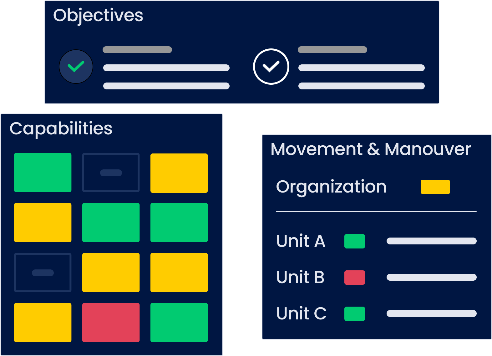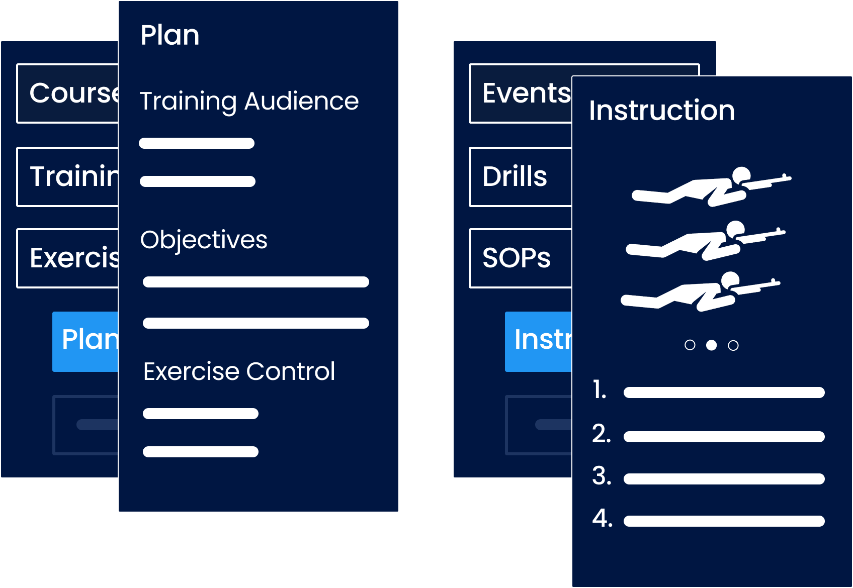 Link objectives and requirements from the individual level to the unit level through structured training blocks aligned with plans and standards. This ensures full traceability, consistency, and measurable progress throughout your training and exercise management cycle.